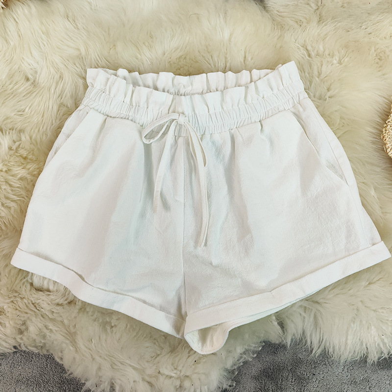 Womens Solid-Colored Loose All-Match Casual Cotton-Linen Shorts