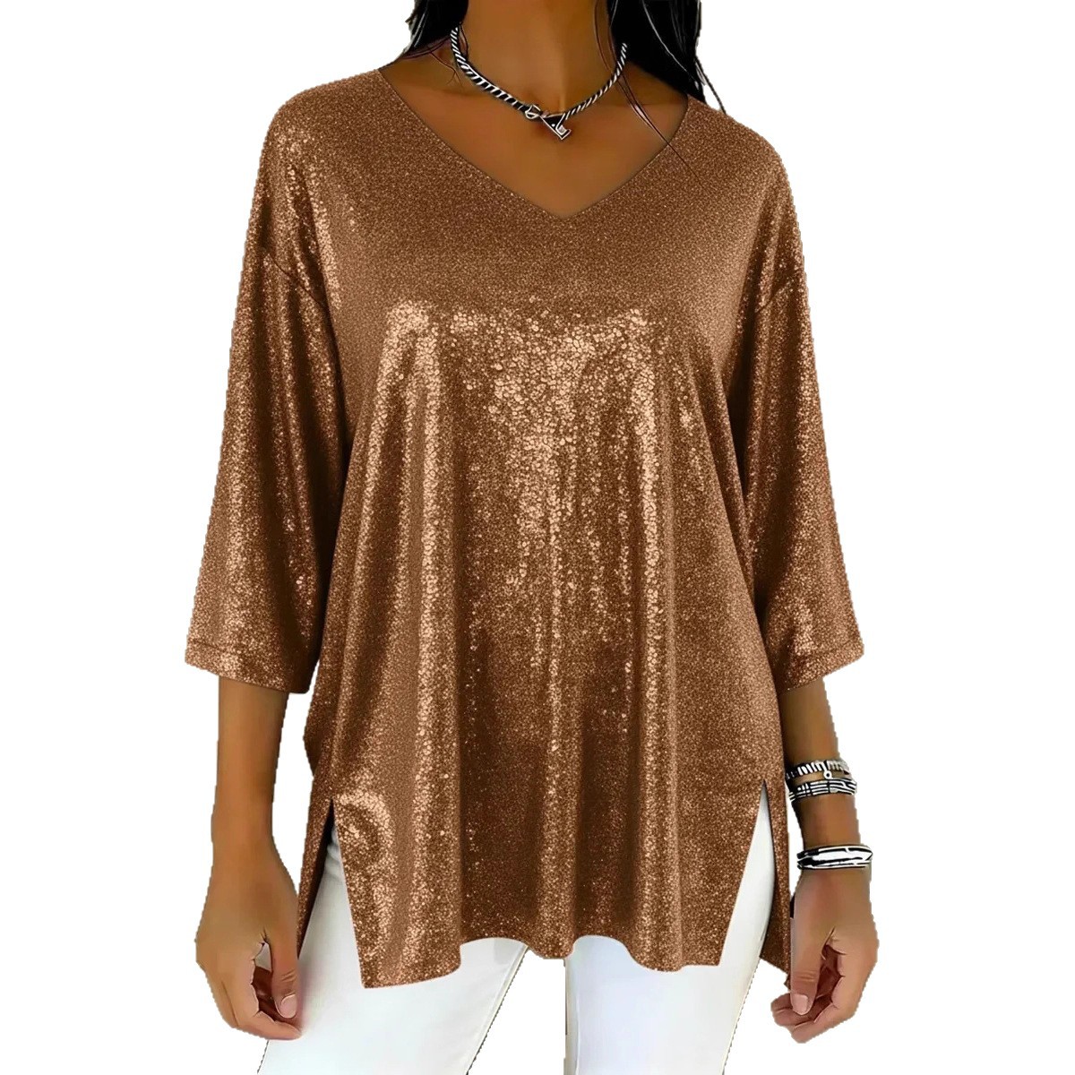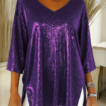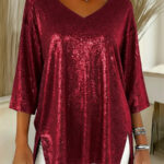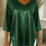 Be the first to review “Womens Solid-Colored Loose V-Neck Cropped-Sleeve Split Top”