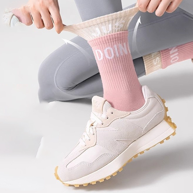 Women’s Spring And Summer Yoga Socks, Sports Socks, Women’s Long Stockings, Letter Printed Color Blocked Yoga Socks is designed for style, comfort, and everyday use.
