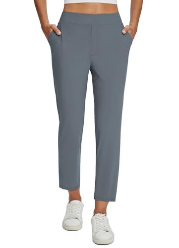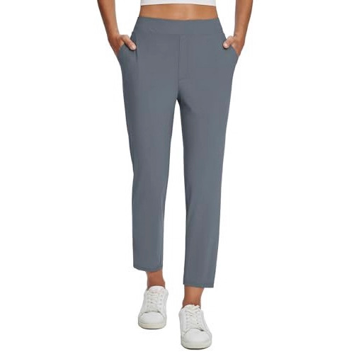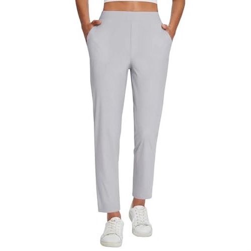 Womens Stretchy Waistband Casual Pants With Zippered Pockets