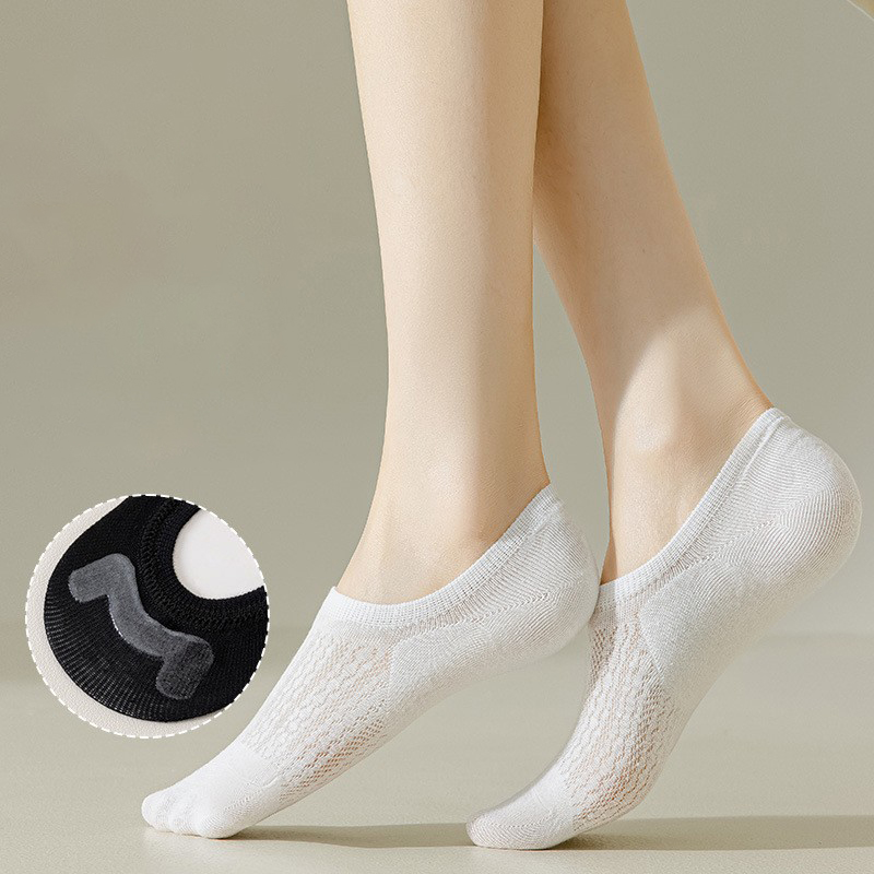 Women’s Summer Mesh Thin Invisible Socks Solid Color Breathable Low-Top Silicone Non-Slip No-Slip Short Socks