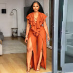 Be the first to review “Womens Summer Ruffle-trimmed Wide-leg Split Jumpsuit”