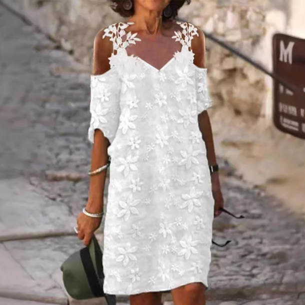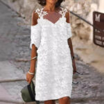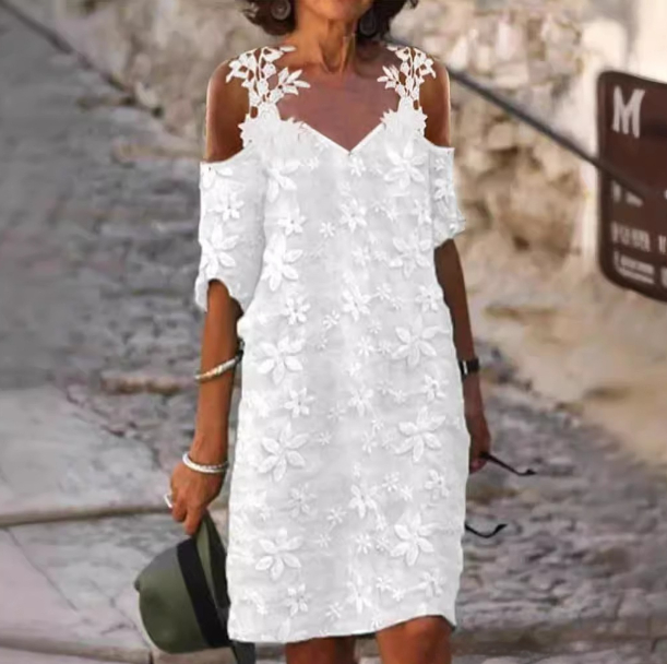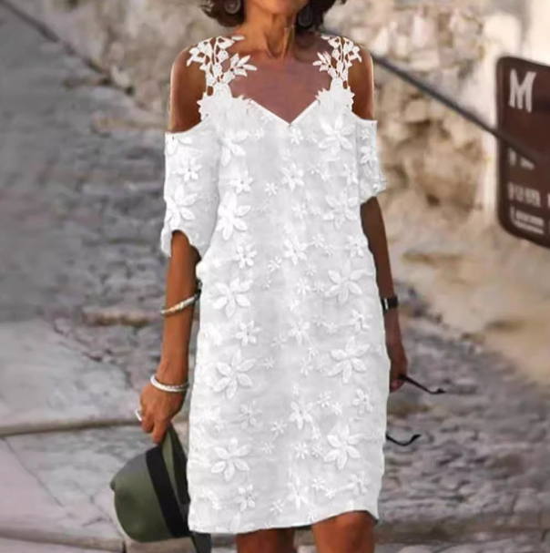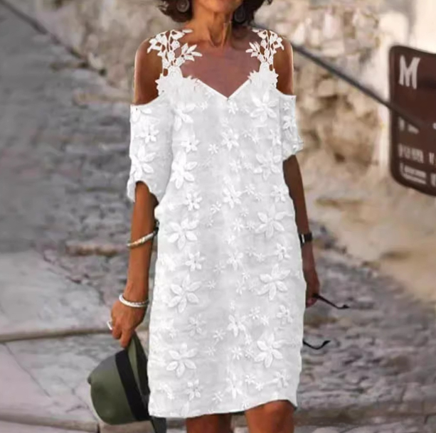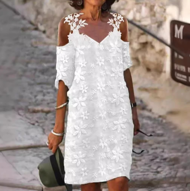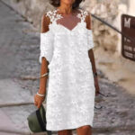 Womens V-Neck Lace Slip Dress With Patchwork Embroidery