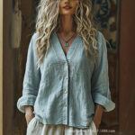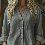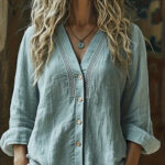 Be the first to review “Women’s V-Neck Linen Loose-Fit Long-Sleeve Shirt”