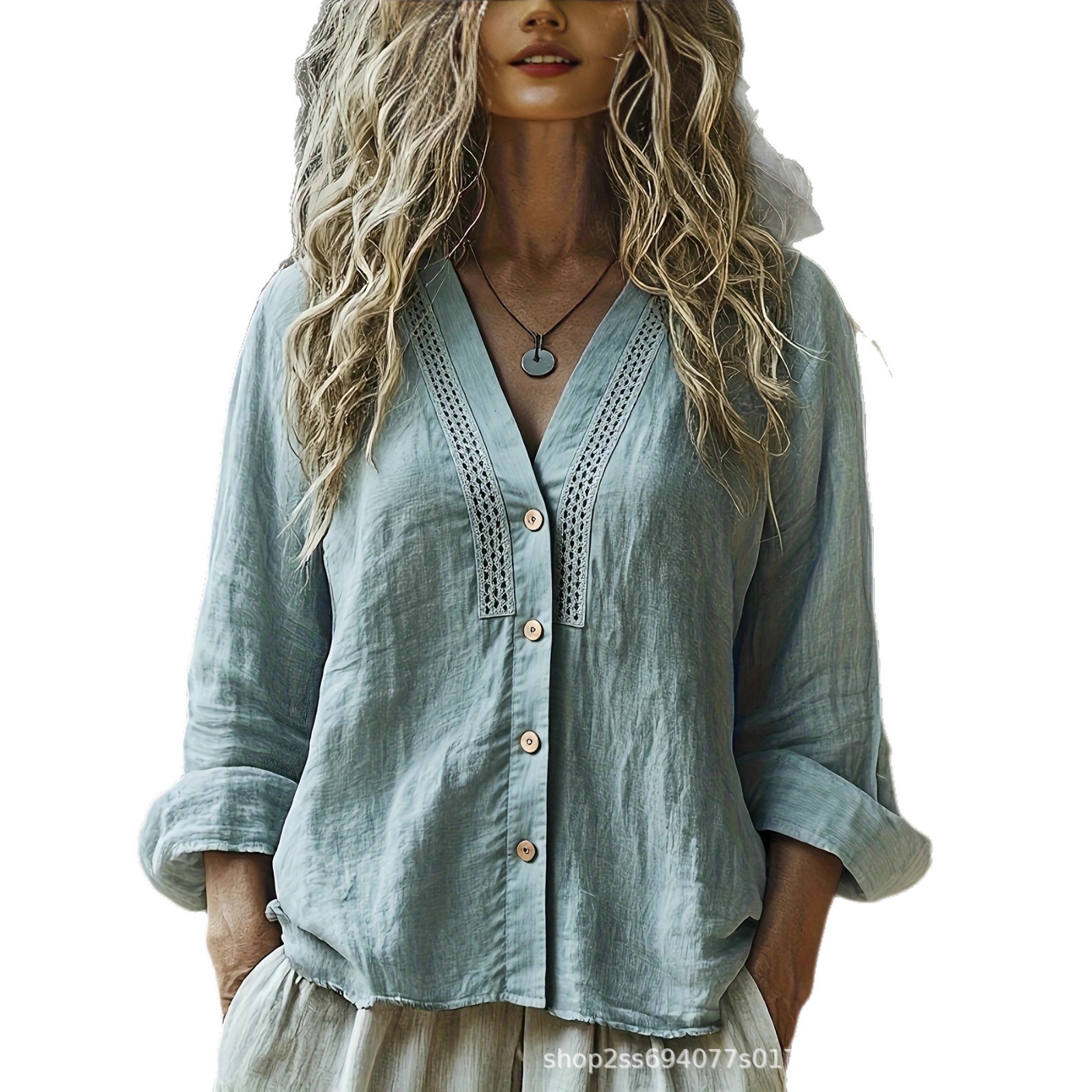 Be the first to review “Women’s V-Neck Linen Loose-Fit Long-Sleeve Shirt”