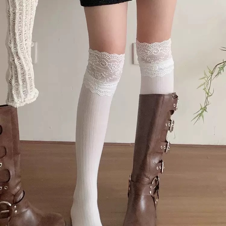 Women’s White Lace Top Over-the-Knee Socks, Coquette Slouchy Thigh High Socks With Embroidery Lace Trim, Soft Casual Socks For Daily Wear & Y2K Style is designed for style, comfort, and everyday use.