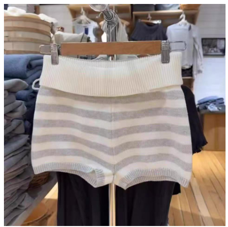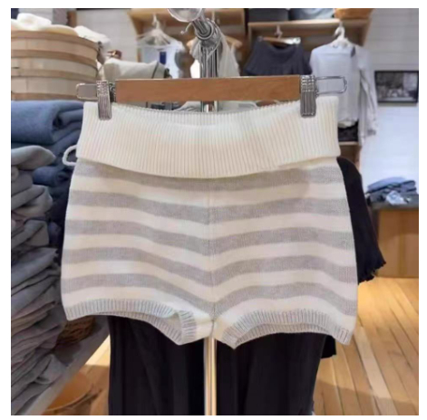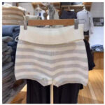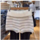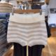Womens White-Striped Knitted High-Waist Straight Shorts