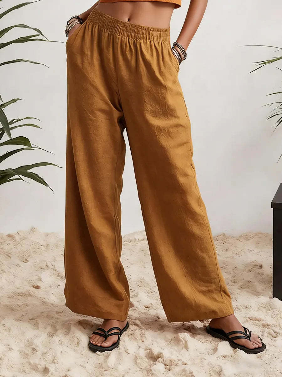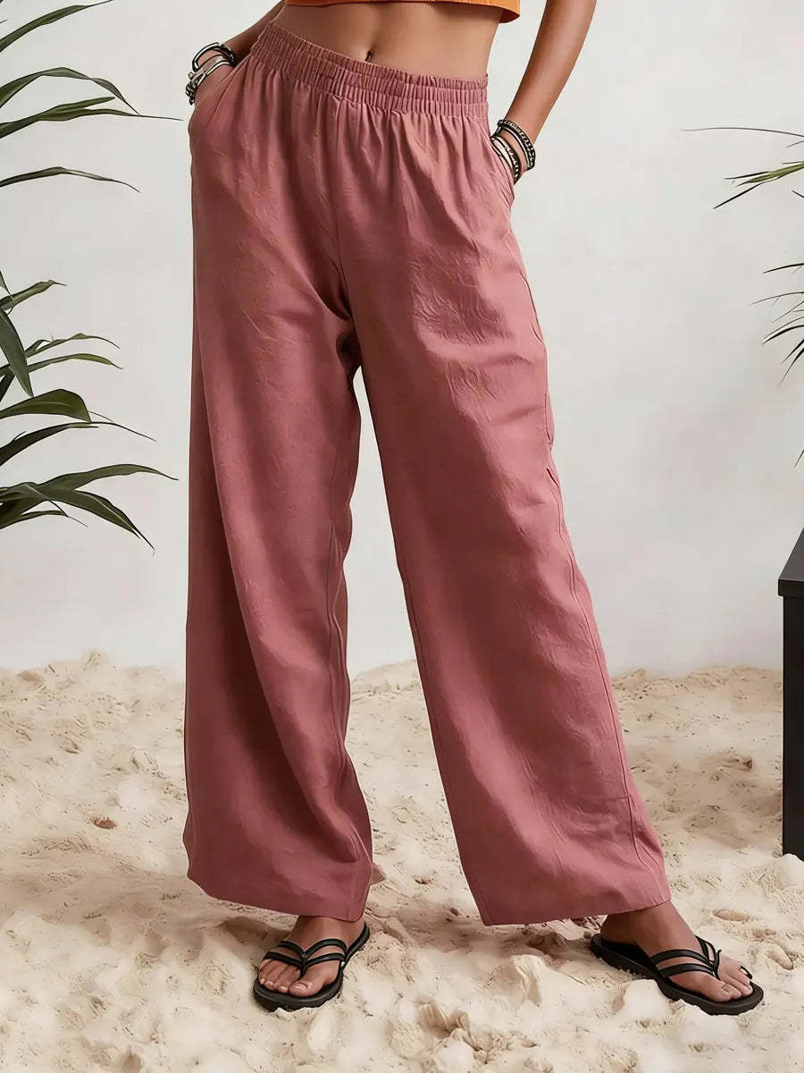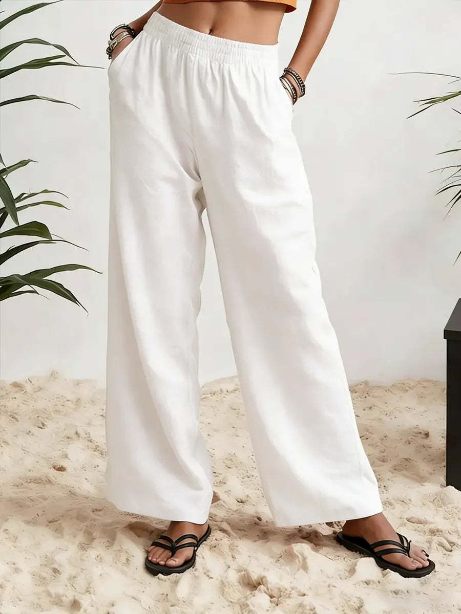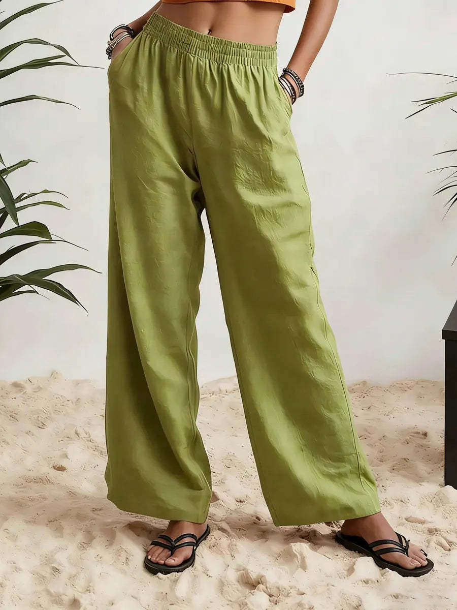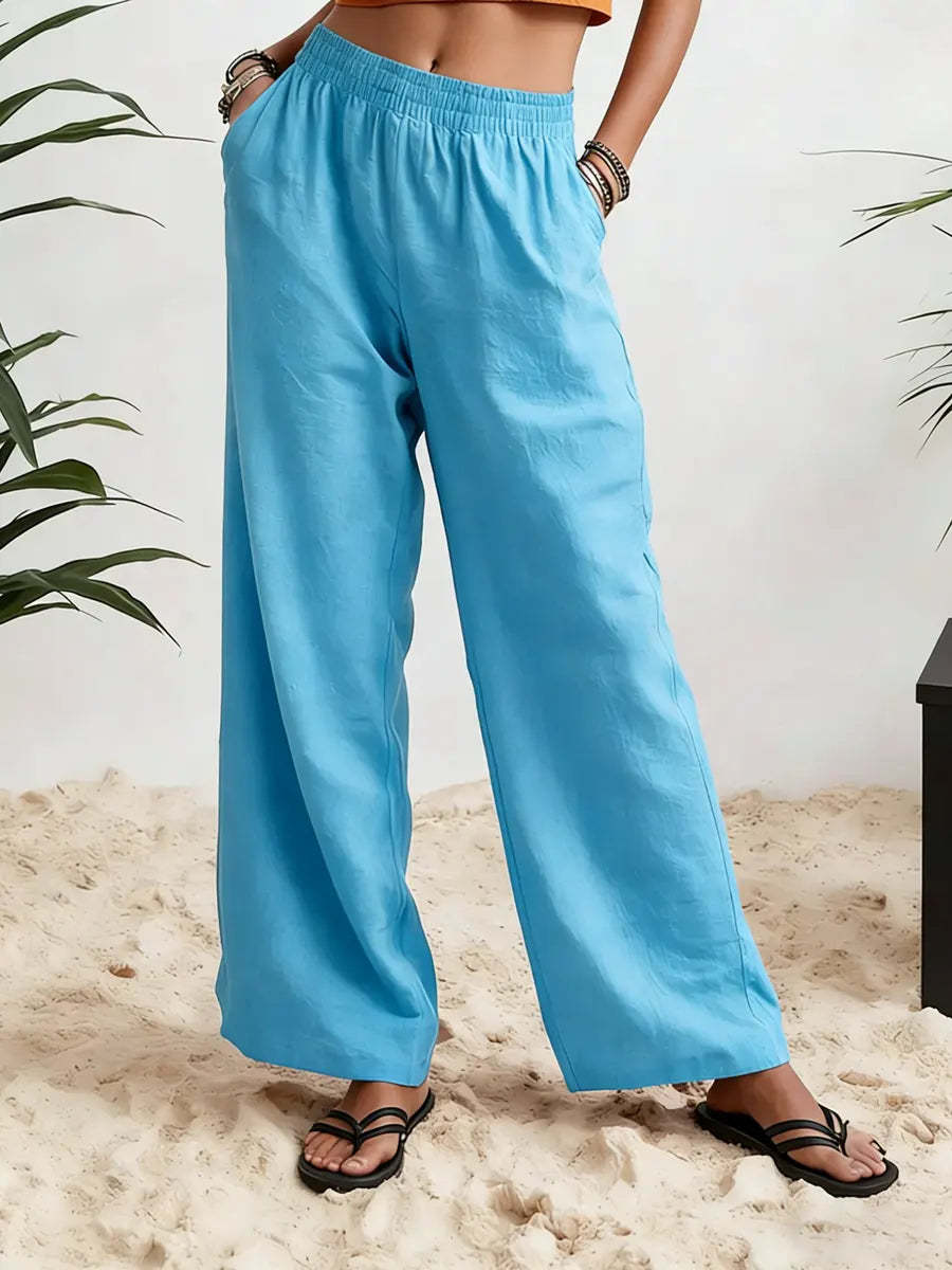 Womens Wide-leg Pants Comfortable Cotton-linen Blend Solid Color Fashionabl