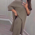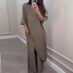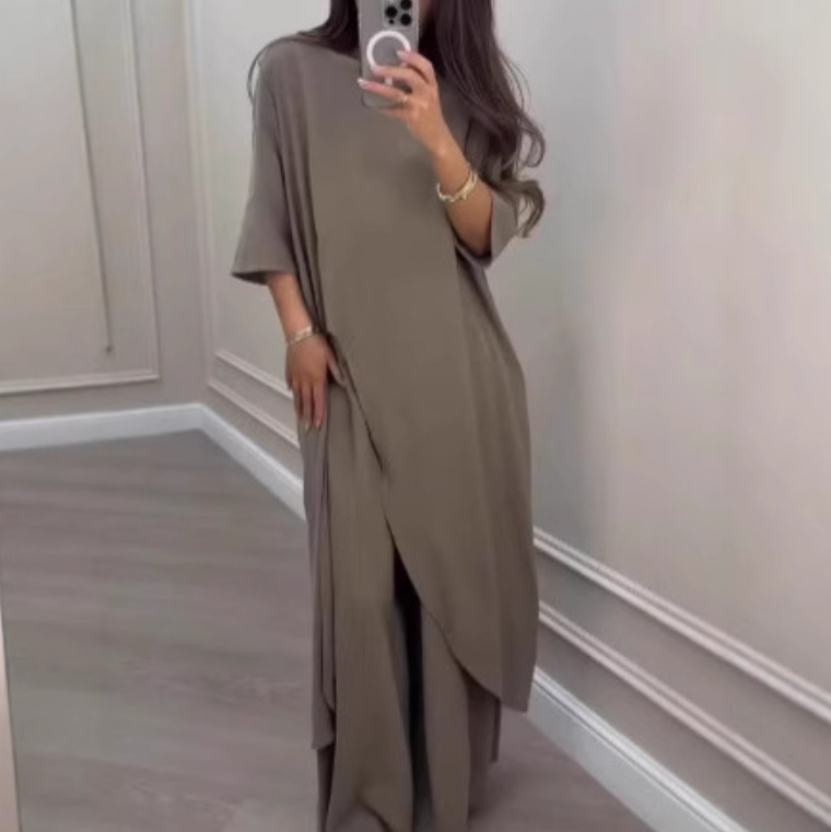 Womens Wide-Leg Pants Suit Fashionable And Casual Solid Color