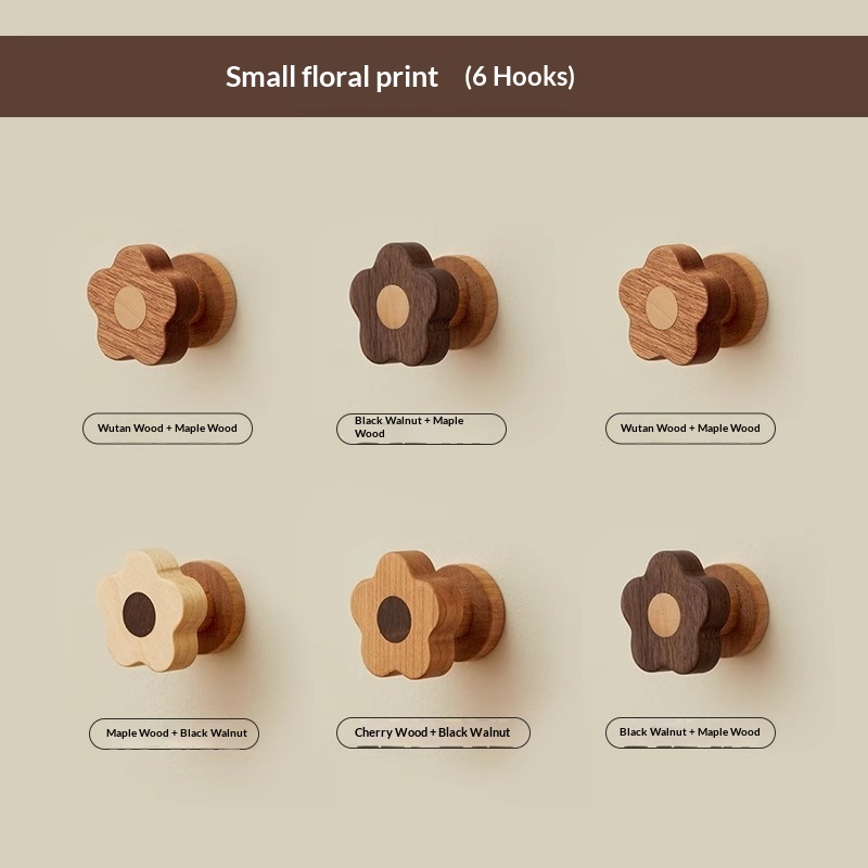 • 6 x Wooden Creative Wall Hook Behind Entrance Door