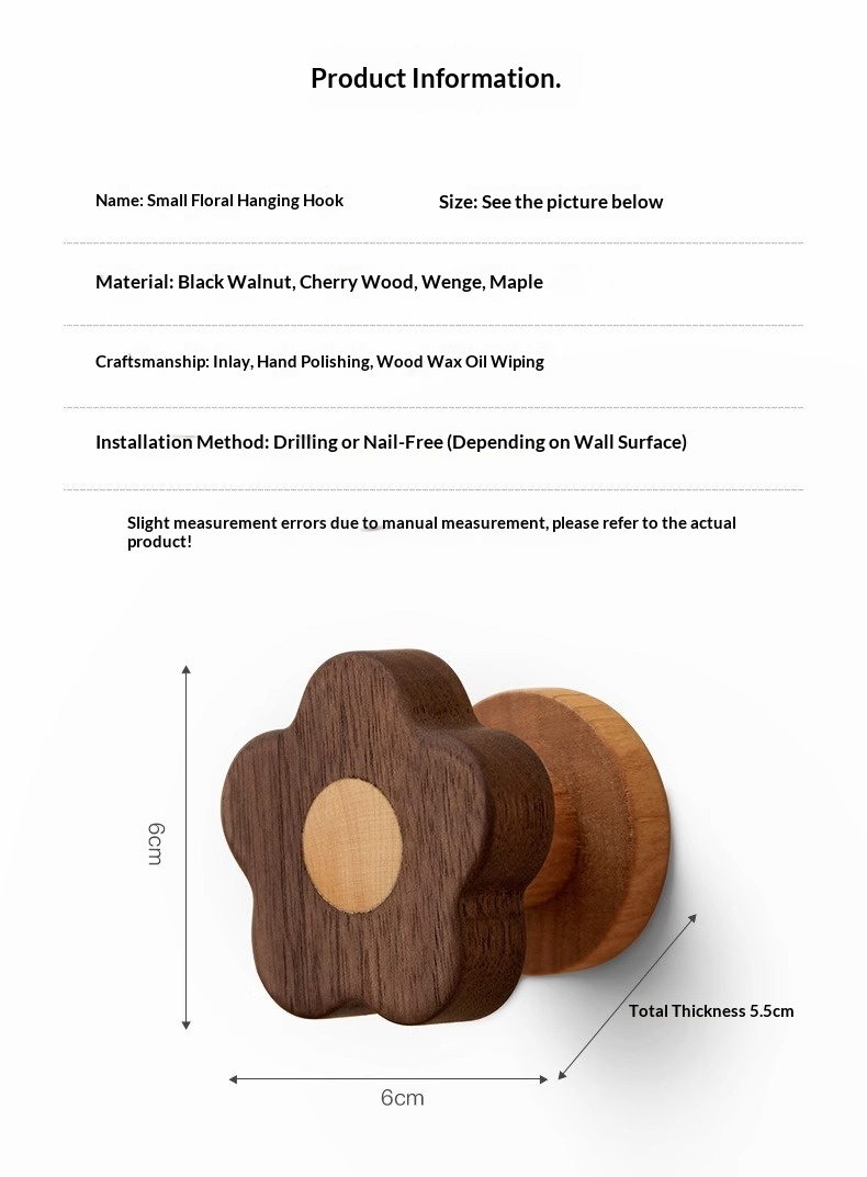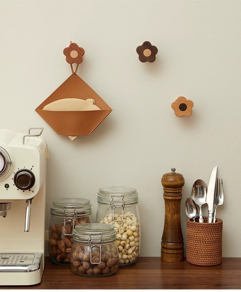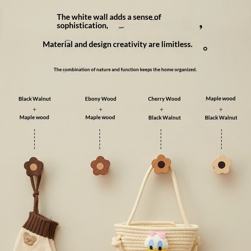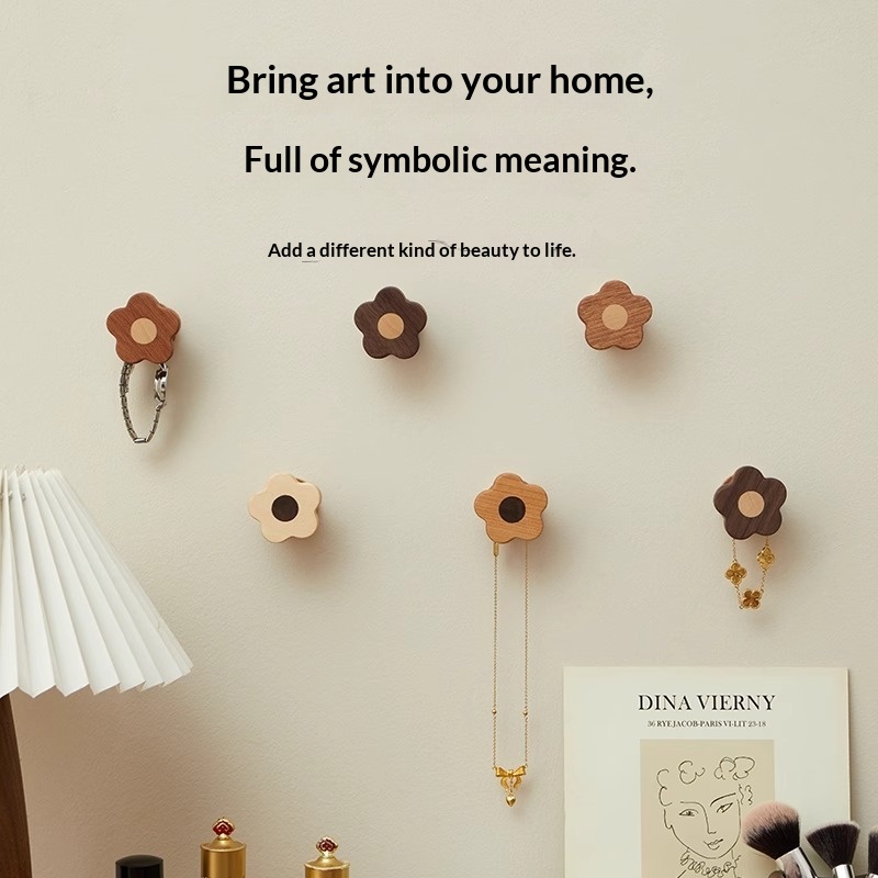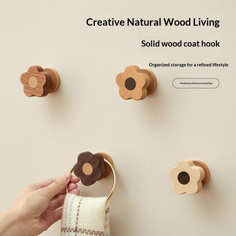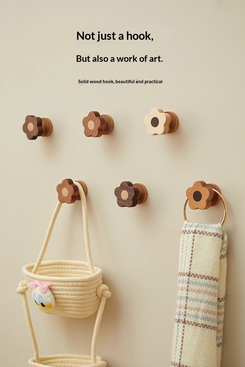 This wooden wall-mounted hook features a modern minimalist design with delicate floral patterns, offering both practical storage and decorative appeal for doors, entryways, or home office spaces. • Modern Minimalist • 1–3 kg (inclusive)