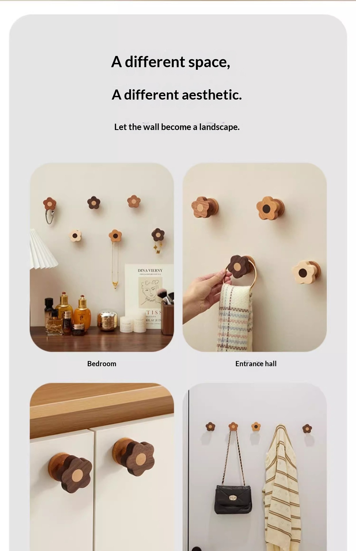 • 4 x Wooden Creative Wall Hooks Behind Entrance Doors