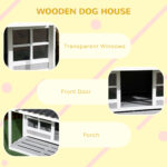 Wooden Dog House with Porch, Dog House Outdoor with Tilt Roof, Front Door, Windows for Medium Large Sized Dog