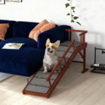 • – Four removable guardrails ensure safety on the ramp – A low 20° ramp slope with six stripes aids pets in climbing – Non-slip carpet surface prevents slips and falls for dogs – Crafted from pine wood for longevity – Suitable for pets under 66 lbs., especially senior dogs – Fits well against a bed, sofa, or other furniture’s edges – Assembly required Specification: – Color: Brown and Gray – Materials: Pine Wood, Polyester – Overall Dimensions: 49.2″ L x 15.7″ W x 27.8″ H – Without Guardrails Height: 49.2″ L x 15.7″ W x 19.7″ H – Ramp: 47.2″ L x 15.7″ W – Platform: 12.6″ L x 15.7″ W x 19.7″ H – Support Feet: 11″ – Guardrails: 18.5″ L x 8.1″ W x 0.8″ D (Ramp), 15.7″/9.8″ L x 8.1″ W x 0.8″ D (Platform) – Strip Spacing: 5.5″ – Maximum Load: 66 lbs. – Ramp Slop: 20° Package Includes: – 1 x Pet Ramp – 1 x Manual