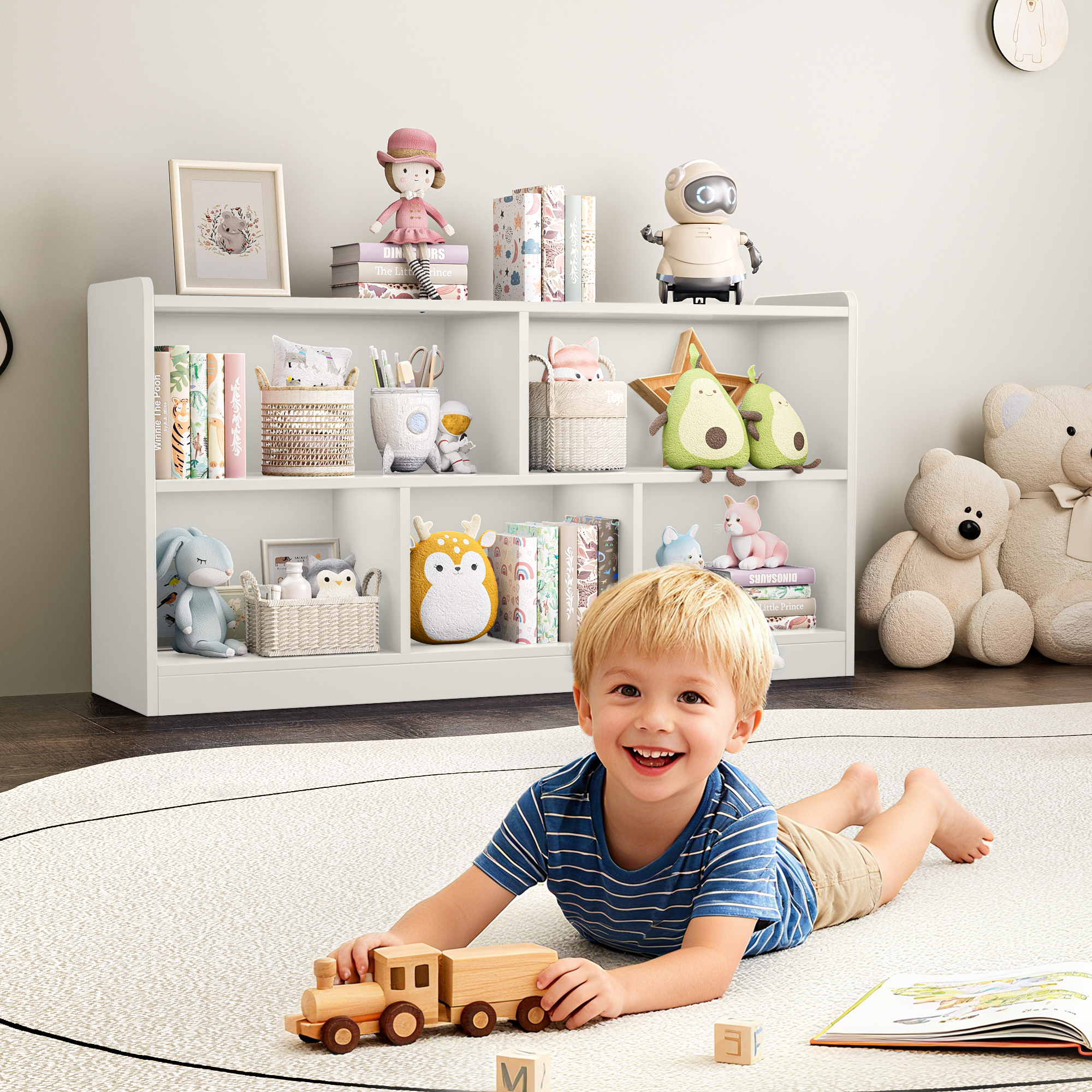 Basic informationProduct Type:Single Box ProductProduct Name:Wooden Storage Cabinet with 5 Sections, Montessori Kids Bookshelf and Toy Organizer for Nursery, Playroom & ClassroomColor:WhiteMaterial:MDFProduct sizeAssembly Length (inches):45.30Assembly Width (inches):11.80Assembly Height (inches):23.60Product Weight (lbs):45.50Package sizeLength (inches):48.03Width (inches):15.35Height (inches):5.31Weight (lbs):48.50Product features:2-in-1 Versatile Cabinet: Measuring 45″ × 12″ × 24″, this multifunctional unit works as a bookshelf, toy organizer, or household storage cabinet—perfect for nurseries, classrooms, playrooms, entryways, and living rooms.Ample Storage Space: Features a spacious top surface and 5 open storage cubes for books, toys, school supplies, and daily essentials, ideal for maximizing storage in smaller rooms.Natural Wood & Safe Design: Crafted from selected natural wood with a moisture-resistant thickened bottom, smooth finish, and rounded edges to ensure safety and long-lasting use.Flexible Multi-Room Use: Simple, neutral styling complements most décor, making it suitable for children’s rooms, preschools, daycares, kitchens, hallways, and more.Kid-Friendly Height: At 24 inches tall, the shelf allows children to reach and organize their belongings independently, fostering Montessori-inspired habits and hands-on skills.