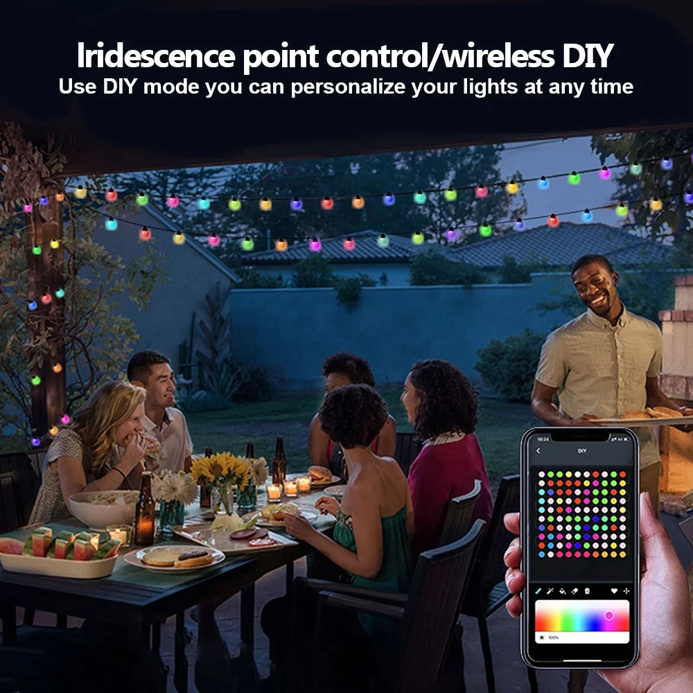 【Smart App Control】In addition to the basic remote control function, we have developed a smarter APP to explore the possibilities of outdoor string lights. By connecting the patio lights via Bluetooth, you can apply different lighting modes, including static or dynamic, DIY custom colors, and flexibly adjust the brightness and speed.