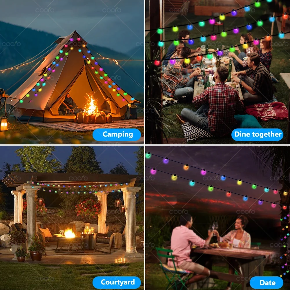 【Novelty Lights】With just one of it, you can get the dual decorative experience of string lights & patio lights. Lightweight and portable, no more fragile glass, we use shatterproof plastic to make the light bulb, easy to resist the pressure of different scenes.