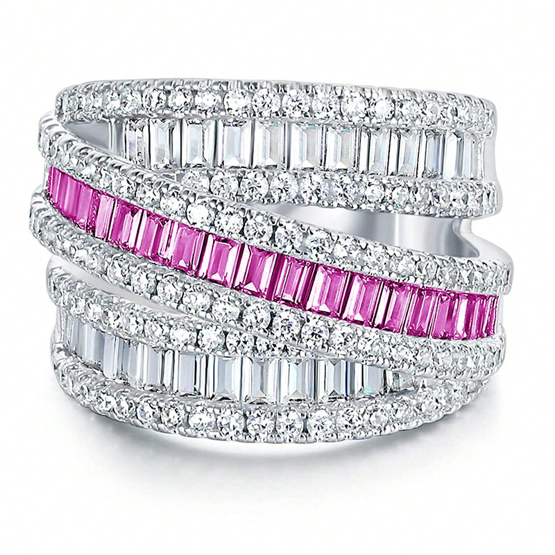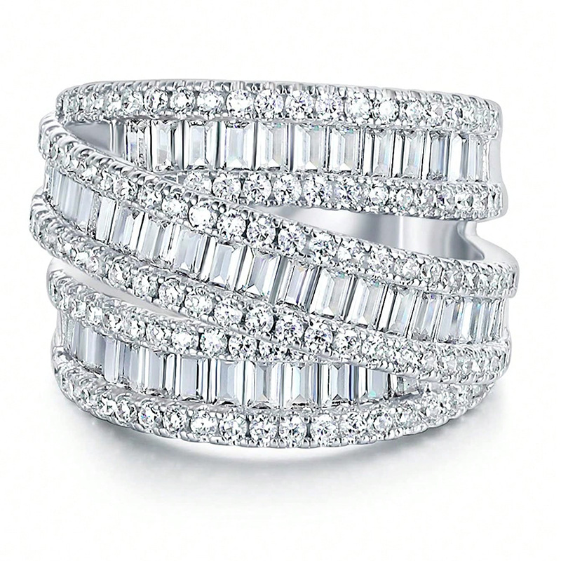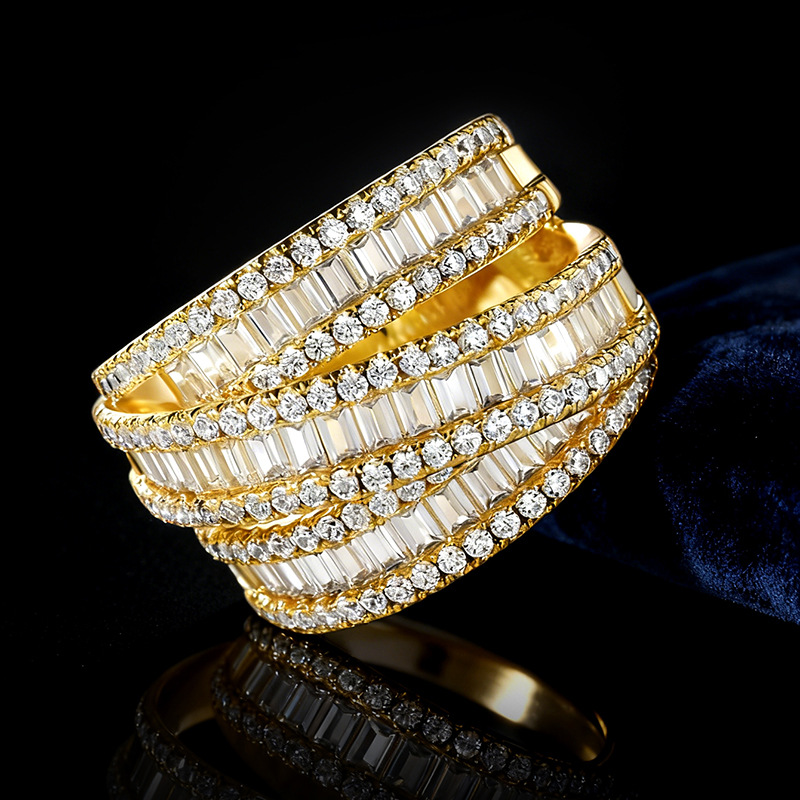 Zircon Ring For Women Three-Row Dense Zircon Hip-Hop